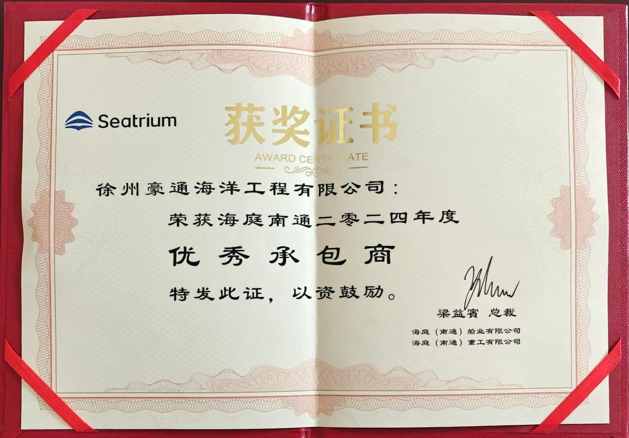 榮獲南通海庭2024年優(yōu)秀分包商稱(chēng)號(hào)