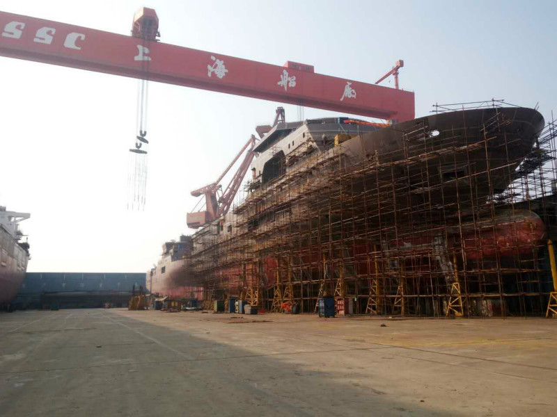 由南通豪通船務(wù)(上海事業(yè)部)在上海船廠承接整船搭載工程的廣州海洋地質(zhì)調(diào)查局綜合物探調(diào)查船(廠編:8010),于2016年12月26日全船貫通。