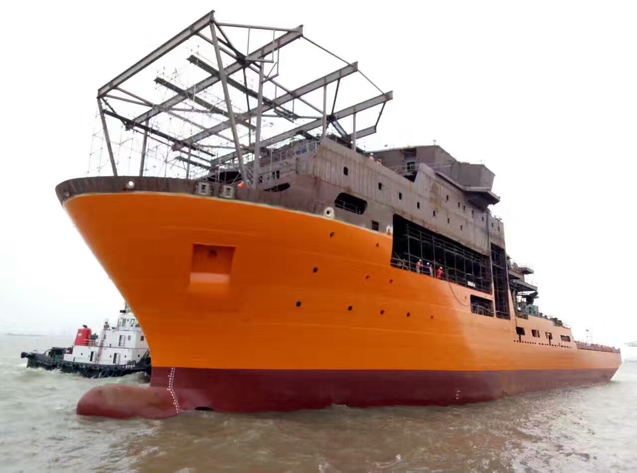 由南通豪通船務(wù)(上海事業(yè)部)在上海振華重工(長興基地)承接搭載工程的潛水飽和支持船,2017618成功下水!