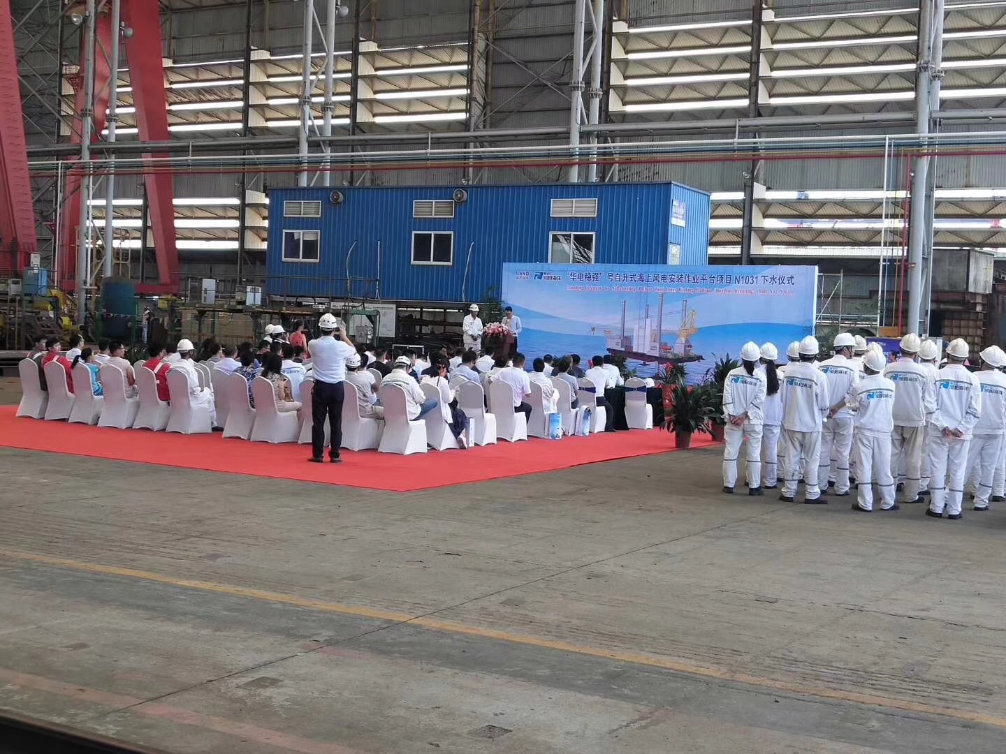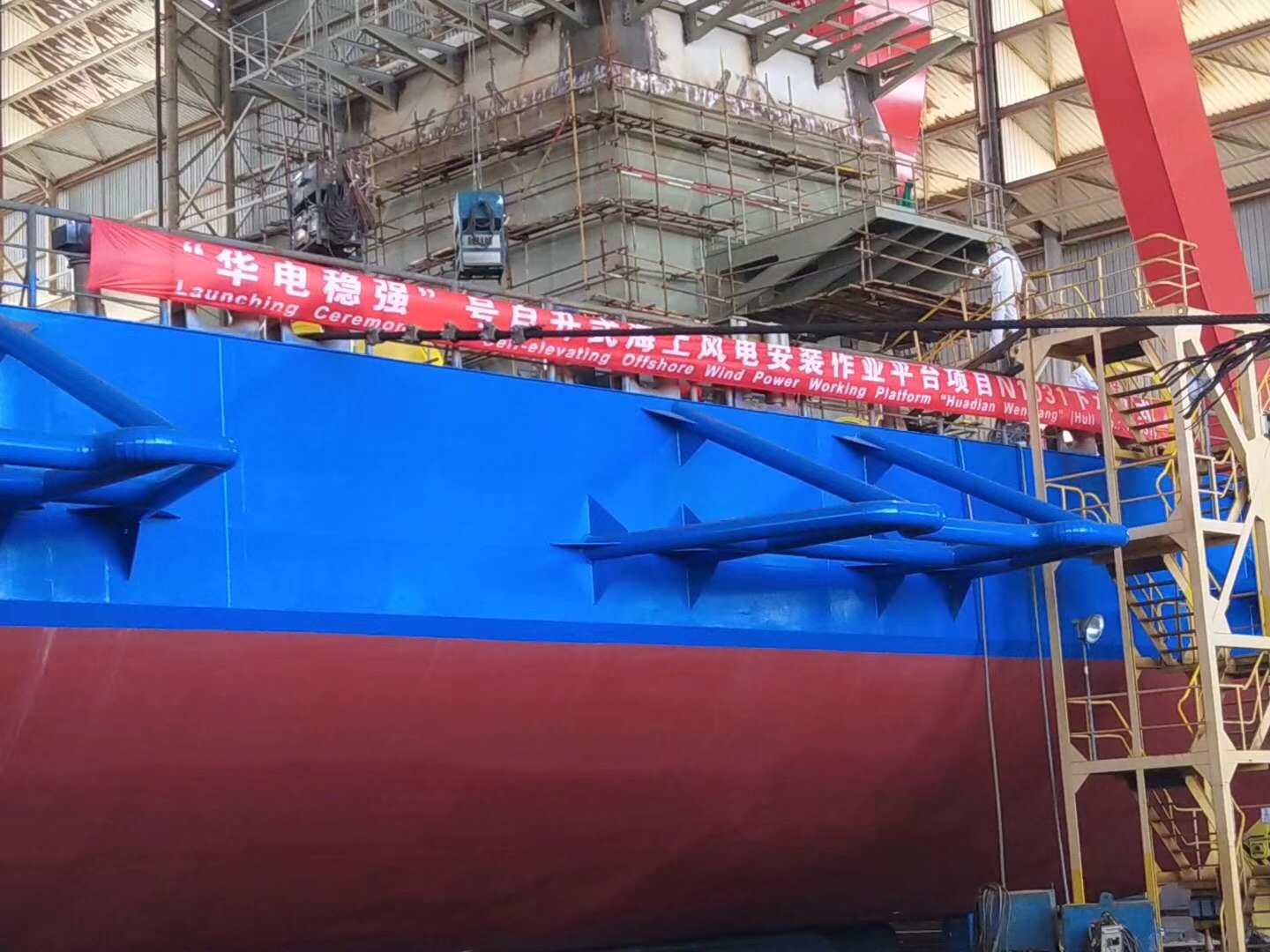 熱烈祝賀由南通豪通船務(wù)在潤邦海洋總包主船體搭載工程的“華電穩(wěn)強”號自升式海上風(fēng)電安裝作業(yè)平臺于2018年8月28日中午順利下水!