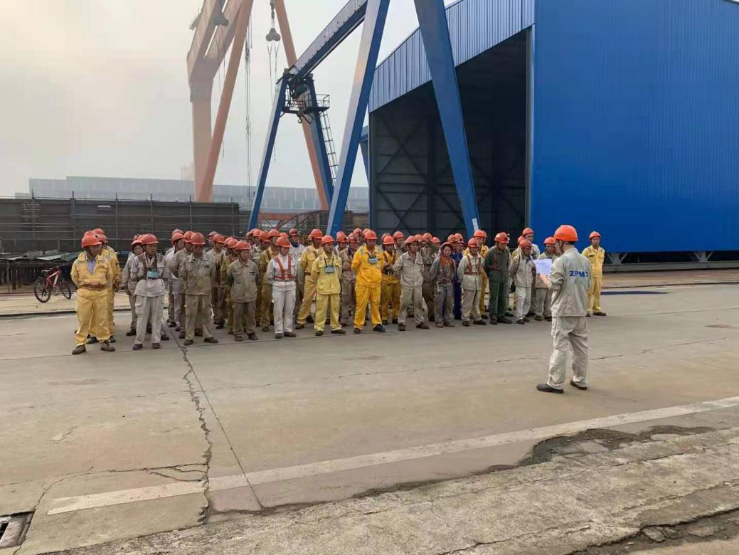 1200T風(fēng)電安裝船南通豪通船務(wù)有限公司,除承接主船體制作及合攏外。更是承接了該船三分之二的特殊結(jié)構(gòu)制作及合攏(包含3個(gè)圍井分段2個(gè)固樁室)工程。這些工程對(duì)精度和焊接質(zhì)量有著較高的要求,總經(jīng)理薛志堅(jiān)掛帥督導(dǎo),安排最優(yōu)秀的裝配班組和最好的焊工,將一份優(yōu)異的成績(jī)單交到了船東和振華重工手中,得到了業(yè)主的肯定。